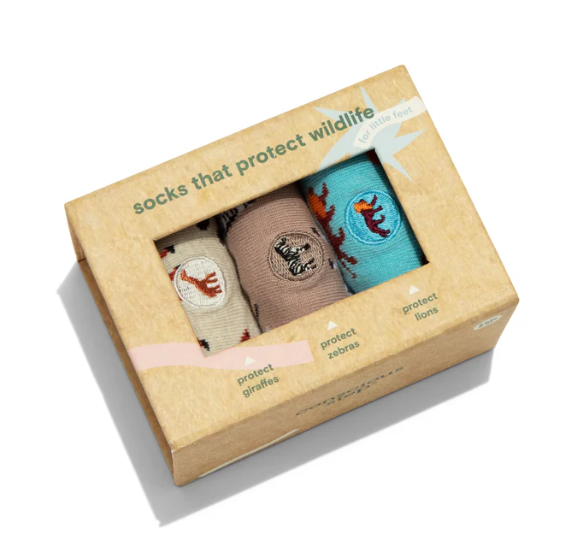 Lions and giraffes and zebras, oh my! These wild socks that protect safari animals are a great opportunity for your kid to wear their favorite animal, match with mom and dad, and to learn about animal conservation.