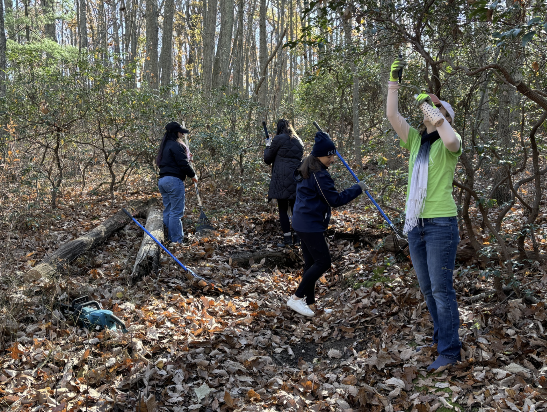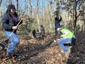 This work is made possible by a generous five-year grant of $500,000 from New Jersey Resources through their Coastal Climate Initiative, along with contributions from our dedicated supporters. MCF is grateful to ESNJ for facilitating volunteer opportunities at Scudder Preserve for businesses and environmental nonprofits across the Garden State. In November, we welcomed MJH Life Sciences for a Scudder Preserve service day where volunteers came together in community to remove invasive plant species, create ecologically beneficial leaf-litter piles, and clean up trails.